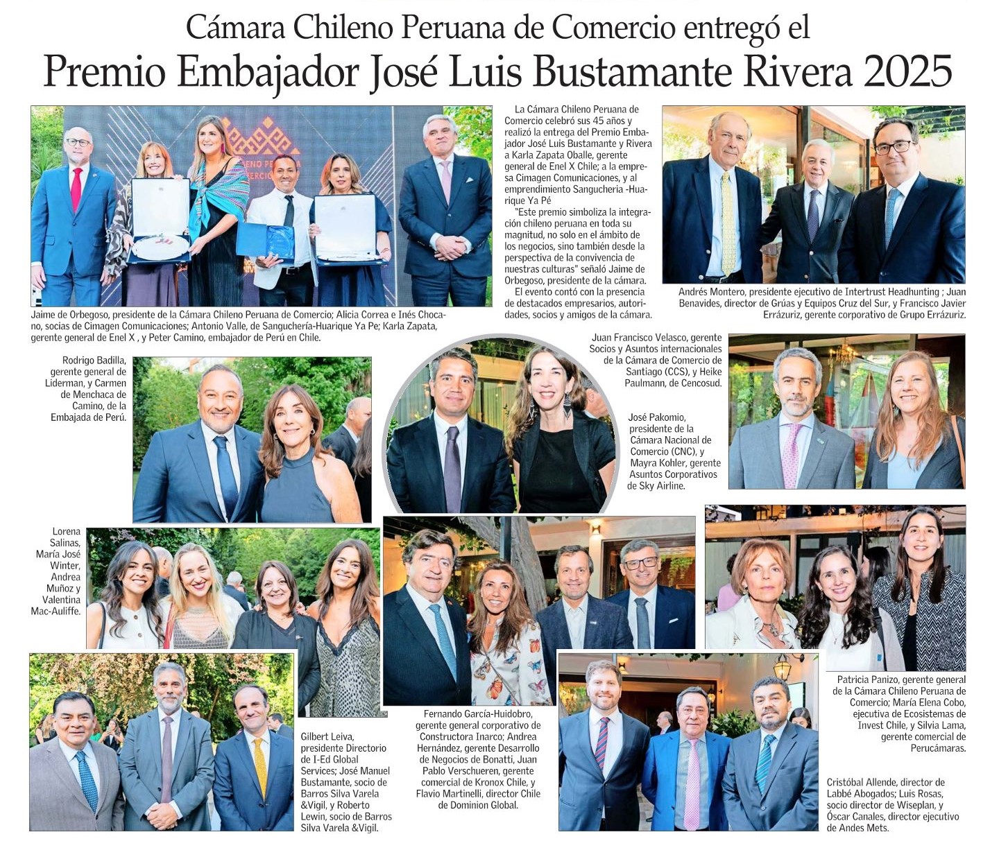 Barros Silva Varela & Vigil participates in the presentation of the 2025 José Luis Bustamante Rivera Ambassador Award by the Chilean-Peruvian Chamber of Commerce